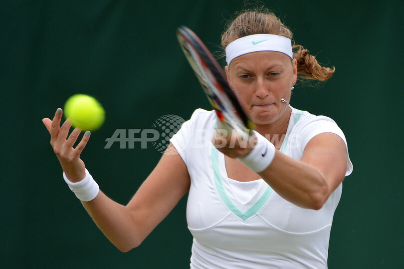 クヴィトバは4強入りをかけ、同日行われた試合でカザフスタンのヤロスラーヴァ・シュウェドワ(Yaroslava Shvedova)を6-1、2-6、7-5で下した第6シードのセレーナ・ウィリアムス(Serena Williams、米国)と準々決勝で対戦する。(c)AFP/Steve Griffiths