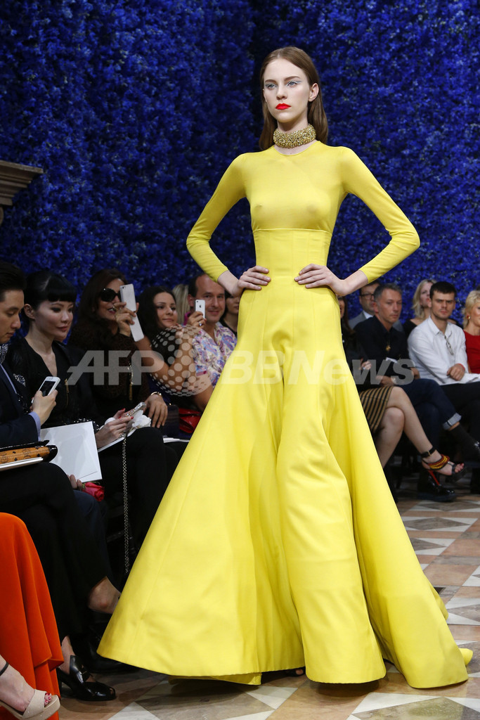 【7月4日 AFP】フランス・パリで2日、「クリスチャン ディオール(Christian Dior)」が、ラフ・シモンズ(Raf Simons)就任後初となる12/13年秋冬オートクチュールコレクションを発表した。メゾンの象徴的なシルエットに、シモンズらしいモダンな解釈を加え、新生「クリスチャン ディオール」の誕生を告げた。