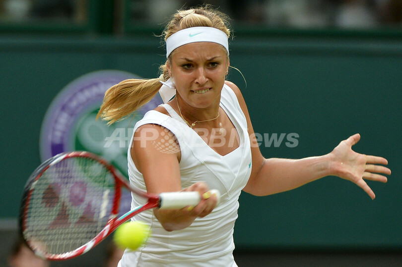 リターンを打つザビーネ・リシキ(2012年7月3日撮影)。(c)AFP/MIGUEL MEDINA
