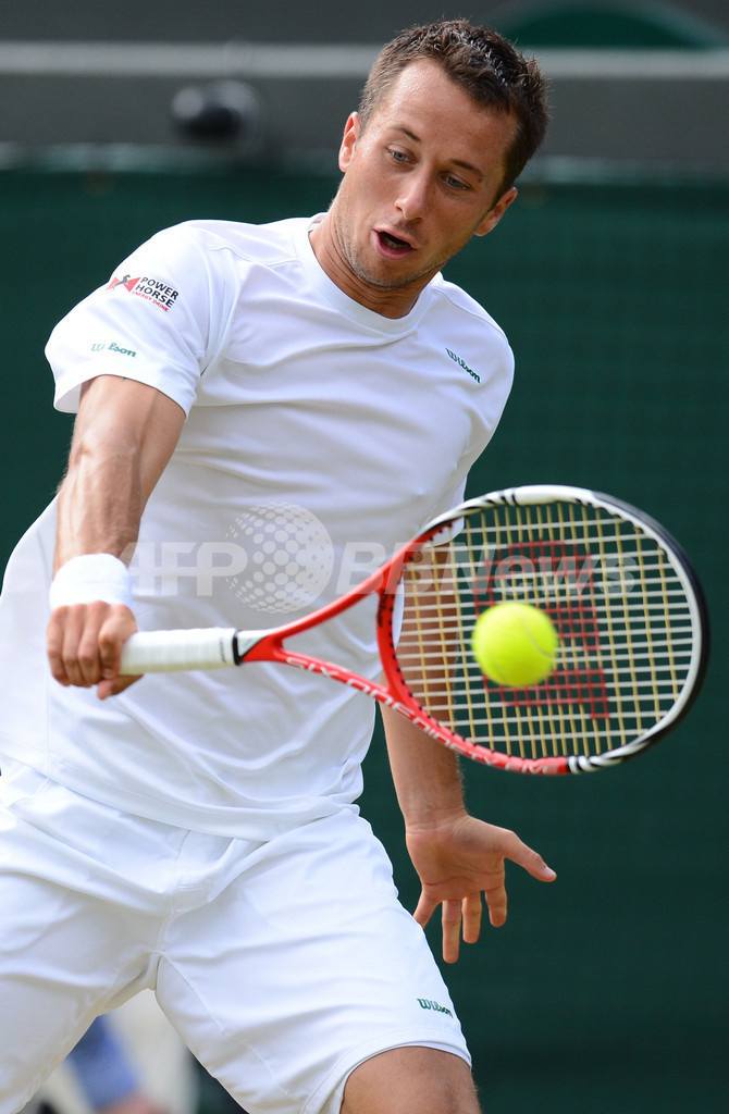 リターンを打つフィリップ・コールシュライバー(2012年7月4日撮影)。(c)AFP/ANDREW YATES