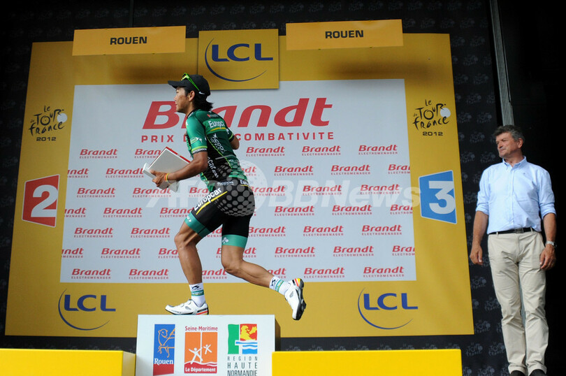【7月5日 AFP】2012ツール・ド・フランス(2012 Tour de France)は4日、第4ステージ(アブヴィルからルーアン、214.5キロメートル)が行われ、チーム・ユーロップカー(Team Europcar)の新城幸也(Yukiya Arashiro)が敢闘賞を獲得した。