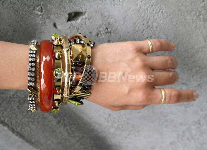 アッシュ・ペー・フランス(H.P. FRANCE)の相澤枝里子(Eriko Aizawa)さんは、「リベット アンド ブルー(Rivet & Blue)」のボーイフレンドデニムにインパクトのあるトップスや小物でワザの効いたスタイル。コーデのポイントについて「あえてトレンドではなく、エイティーズのグラムっぽさをイメージしました。デニムは、膝下までたくし上げて履くのが好きです」と相澤さん。手元や耳元を彩るのは、コスチュームジュエリーが人気のブランド「イオッセリアーニ(IOSSELLIANI)」。ピアスは左右でストーンの色が違う。バングルは6本、リングは4本セットなのでまとめて着けたり1本ずつ着けたりといろいろな楽しみ方ができる。