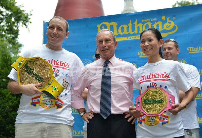 米ニューヨークで独立記念日恒例のホットドッグ早食い大会