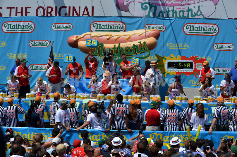 米ニューヨークで独立記念日恒例のホットドッグ早食い大会