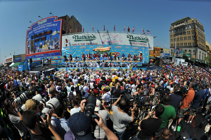 米ニューヨークで独立記念日恒例のホットドッグ早食い大会