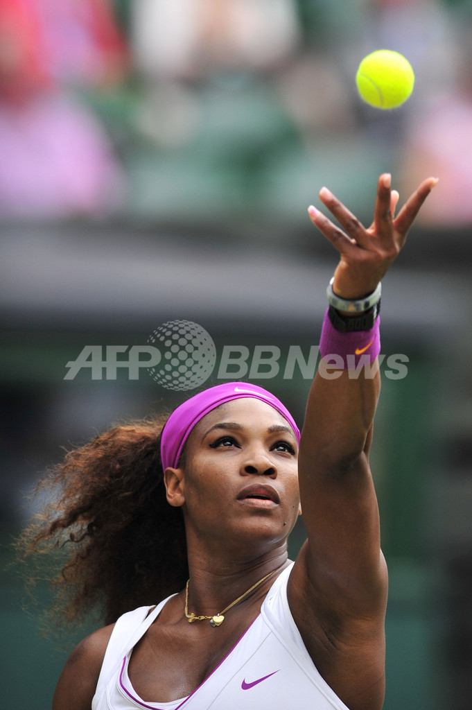 サーブトスを上げるセレーナ・ウィリアムス(2012年7月5日撮影)。(c)AFP/GLYN KIRK