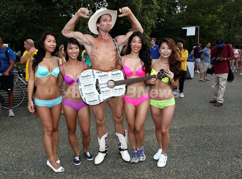 Central Park)で6日、下着姿のレース、「アメリカを称える下着ラン(