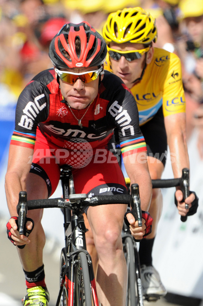レースに臨むBMCレーシングチーム(BMC Racing Team)のカデル・エヴァンス(Cadel Evans、2012年7月8日撮影)。(c)AFP/PASCAL PAVANII