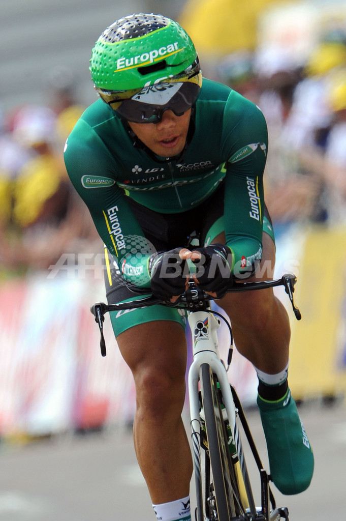 レースに臨むチーム・ユーロップカー(Team Europcar)の新城幸也(Yukiya Arashiro、2012年7月9日撮影)。(c)AFP/PASCAL PAVANII