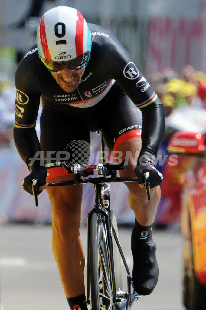 レースに臨むレディオシャック・ニッサン(RadioShack-Nissan)のファビアン・カンチェラーラ(Fabian Cancellara、2012年7月9日撮影)。(c)AFP/PASCAL PAVANII