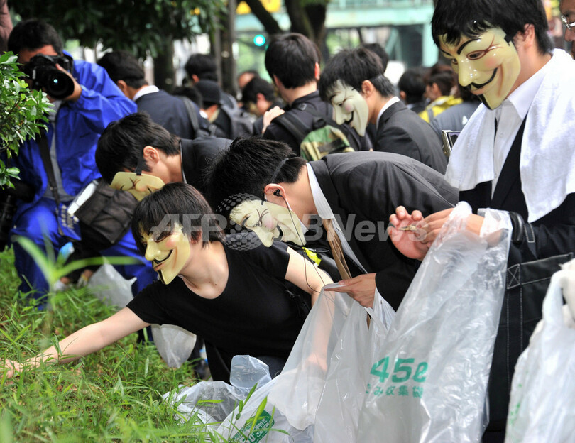 ニュース ライフ アノニマスが都内で清掃活動 2012年7月9日 20:36 発信地:東京 [ アジア・オセアニア 東京 ] このニュースをシェア ‹ › ❮ 8/10 ❯ ハッカーの国際的なネットワーク「アノニマス(Anonymous)」が7日、都内で清掃活動を主催し、トレードマークのマスクをかぶった人びとが集まった(2012年7月7日撮影)。(c)AFP/Yoshikazu TSUNO 画像作成中 ! 【7月9日 AFP】ハッカーの国際的なネットワーク「アノニマス(Anonymous)」が7日、都内で清掃活動を主催し、トレードマークのマスクをかぶった人びとが集まった。(c)AFP ライフ 一覧へ> メディア・報道関係・法人の方向け 写真・動画 購入のお問合せ>