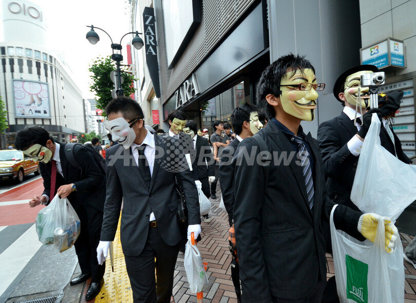 ニュース ライフ アノニマスが都内で清掃活動 2012年7月9日 20:36 発信地:東京 [ アジア・オセアニア 東京 ] このニュースをシェア ‹ › ❮ 6/10 ❯ ハッカーの国際的なネットワーク「アノニマス(Anonymous)」が7日、都内で清掃活動を主催し、トレードマークのマスクをかぶった人びとが集まった(2012年7月7日撮影)。(c)AFP/Yoshikazu TSUNO 画像作成中 ! 【7月9日 AFP】ハッカーの国際的なネットワーク「アノニマス(Anonymous)」が7日、都内で清掃活動を主催し、トレードマークのマスクをかぶった人びとが集まった。(c)AFP ライフ 一覧へ> メディア・報道関係・法人の方向け 写真・動画 購入のお問合せ>
