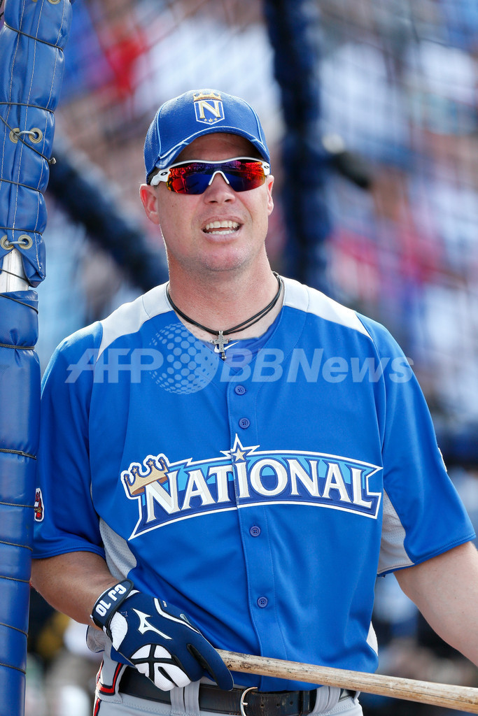 練習に参加するナ・リーグのチッパー・ジョーンズ(Chipper Jones、2012年7月9日撮影)。(c)AFP/Getty Images/Jamie Squire