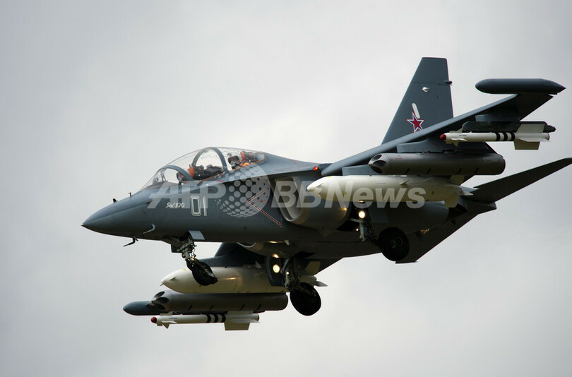 写真は、デモ飛行するロシアの高等練習機「Yak 130」(2012年7月9日撮影)。(c)AFP/ADRIAN DENNIS