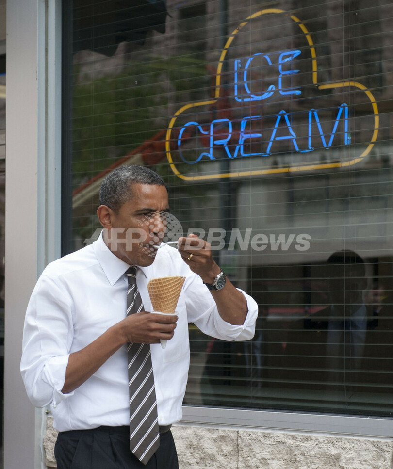 アイスクリームほおばるオバマ米大統領