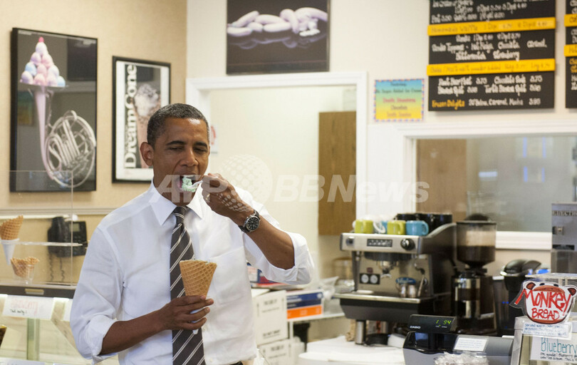 アイスクリームほおばるオバマ米大統領