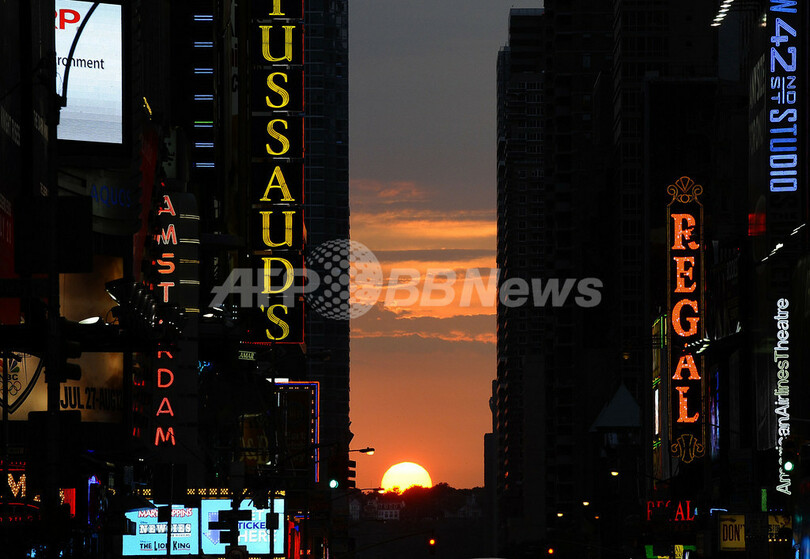 ニュース ライフ こぼれ話 ニューヨーク42番街で「マンハッタンヘンジ」 2012年7月12日 12:12 発信地:ニューヨーク/米国 [ 北米 米国 ] このニュースをシェア ‹ › ❮ 3/7 ❯ 米ニューヨーク市(New York City)マンハッタン(Manhattan)の42番街で11日夕、道路の延長線上に夕日が沈む「マンハッタンヘンジ(Manhattanhenge)」が見られた。マンハッタンヘンジは夏至の前後2回発生する自然現象で、夏至をもじって「マンハッタン至(Manhattan Solstice)」とも呼ばれる(2012年7月11日撮影)。(c)AFP/TIMOTHY A. CLARY 画像作成中 ! 【7月12日 AFP】米ニューヨーク市(New York City)マンハッタン(Manhattan)の42番街で11日夕、道路の延長線上に夕日が沈む「マンハッタンヘンジ(Manhattanhenge)」が見られた。マンハッタンヘンジは夏至の前後2回発生する自然現象で、夏至をもじって「マンハッタン至(Manhattan Solstice)」とも呼ばれる。(c)AFP ライフ 一覧へ> メディア・報道関係・法人の方向け 写真・動画 購入のお問合せ>