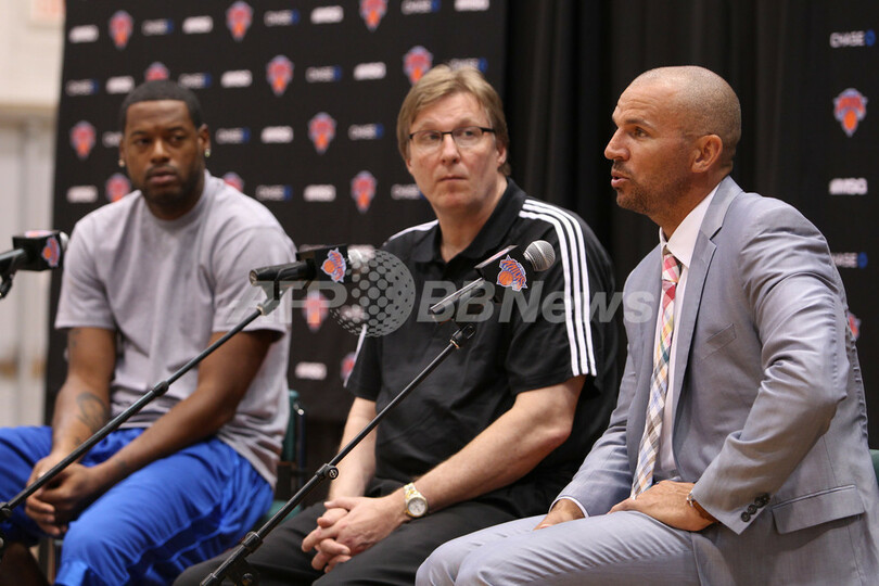 【7月13日 AFP】米プロバスケットボール協会(NBA)のニューヨーク・ニックス(New York Knicks)は12日、本拠地マディソン・スクエア・ガーデン(Madison Square Garden)の練習施設でジェイソン・キッド(Jason Kidd)とマーカス・キャンビー(Marcus Camby)の入団会見を行った。(c)AFP