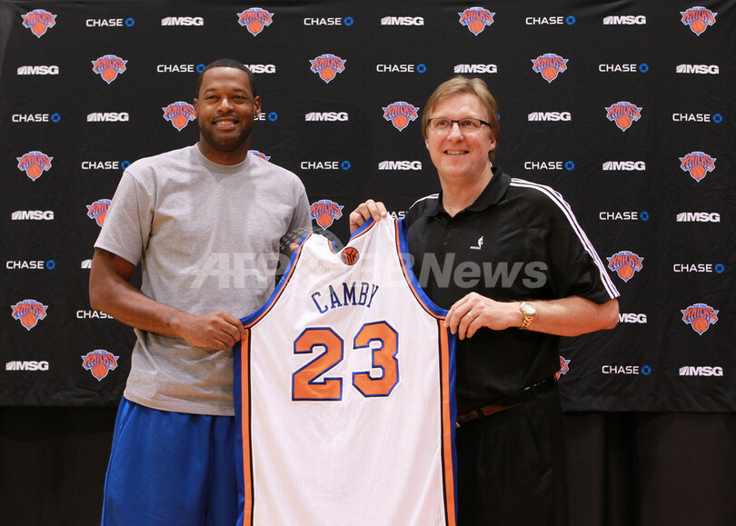 【7月13日 AFP】米プロバスケットボール協会(NBA)のニューヨーク・ニックス(New York Knicks)は12日、本拠地マディソン・スクエア・ガーデン(Madison Square Garden)の練習施設でジェイソン・キッド(Jason Kidd)とマーカス・キャンビー(Marcus Camby)の入団会見を行った。(c)AFP