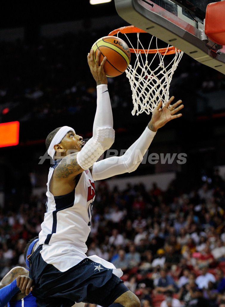 得点を狙う米国のカーメロ・アンソニー(Carmelo Anthony、2012年7月12日撮影)。(c)AFP/Getty Images/David Becker
