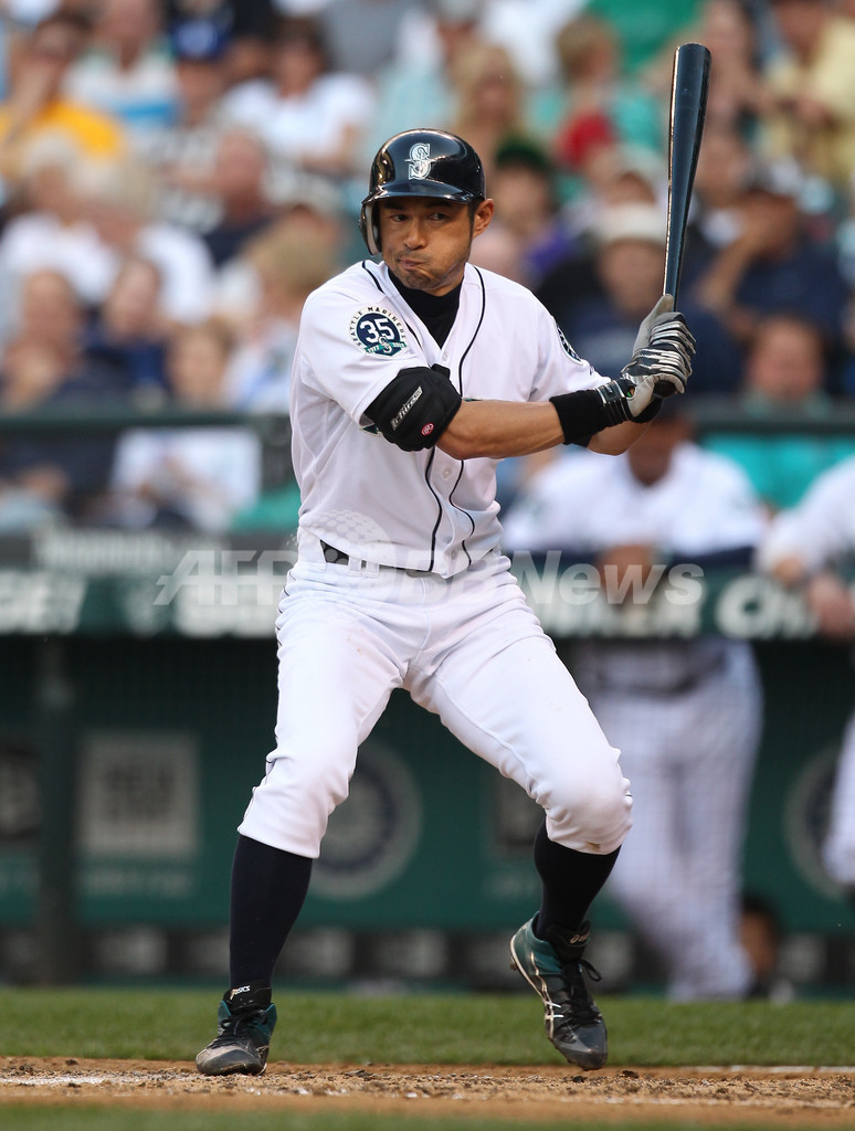 テキサス・レンジャーズ戦で5打数1安打だったシアトル・マリナーズのイチロー(Ichiro Suzuki、2012年7月14日撮影)。(c)AFP/Getty Images/Otto Greule Jr