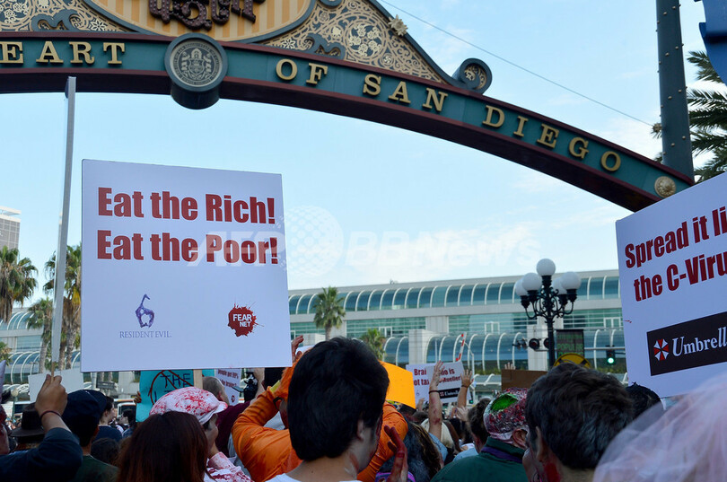 ニュース ライフ こぼれ話 サンディエゴ市内を歩き回るゾンビたち、「コミックコン2012」で 2012年7月14日 18:52 発信地:サンディエゴ/米国 [ 北米 米国 ] このニュースをシェア ‹ › ❮ 27/33 ❯ 米カリフォルニア(California)州サンディエゴ(San Diego)で12日、コミックの祭典「コミックコン・インターナショナル(Comic-Con International)2012」が開幕。13日にはゾンビ・ウォークが開催され、血まみれの「ゾンビ」たちが市内を練り歩いた(2012年7月13日撮影)。(c)AFP/Getty Images/Frazer Harrison 画像作成中 ! 【7月14日 AFP】米カリフォルニア(California)州サンディエゴ(San Diego)で12日、コミックの祭典「コミックコン・インターナショナル(Comic-Con International)2012」が開幕。13日にはゾンビ・ウォークが開催され、血まみれの「ゾンビ」たちが市内を練り歩いた。(c)AFP/Getty Images ライフ 一覧へ> メディア・報道関係・法人の方向け 写真・動画 購入のお問合せ>