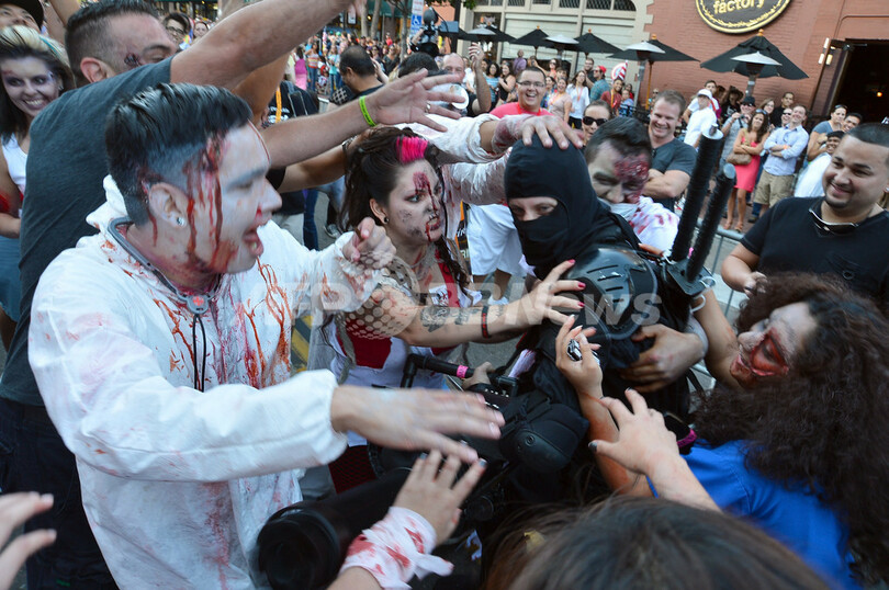 ニュース ライフ こぼれ話 サンディエゴ市内を歩き回るゾンビたち、「コミックコン2012」で 2012年7月14日 18:52 発信地:サンディエゴ/米国 [ 北米 米国 ] このニュースをシェア ‹ › ❮ 18/33 ❯ 米カリフォルニア(California)州サンディエゴ(San Diego)で12日、コミックの祭典「コミックコン・インターナショナル(Comic-Con International)2012」が開幕。13日にはゾンビ・ウォークが開催され、血まみれの「ゾンビ」たちが市内を練り歩いた(2012年7月13日撮影)。(c)AFP/Getty Images/Frazer Harrison 画像作成中 ! 【7月14日 AFP】米カリフォルニア(California)州サンディエゴ(San Diego)で12日、コミックの祭典「コミックコン・インターナショナル(Comic-Con International)2012」が開幕。13日にはゾンビ・ウォークが開催され、血まみれの「ゾンビ」たちが市内を練り歩いた。(c)AFP/Getty Images ライフ 一覧へ> メディア・報道関係・法人の方向け 写真・動画 購入のお問合せ>