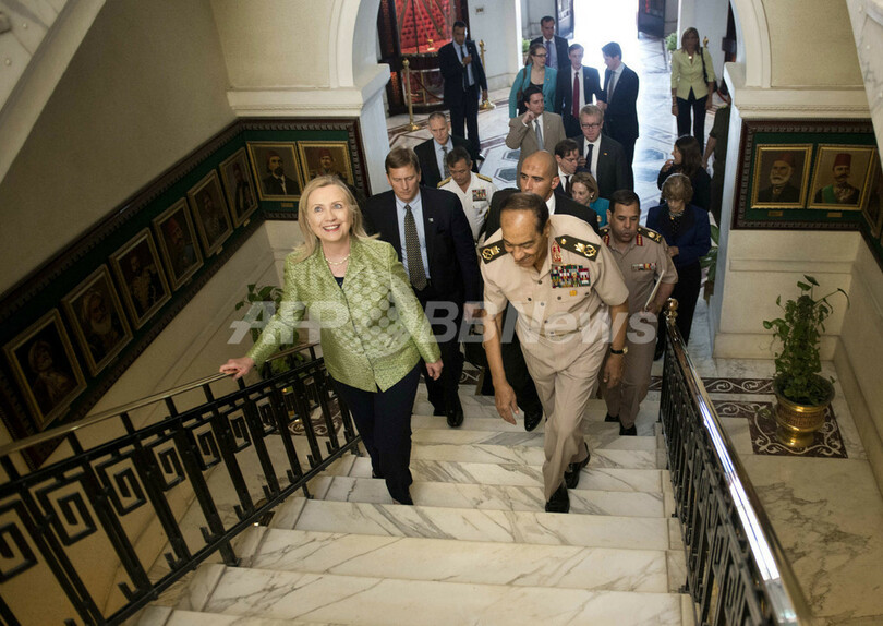 14日にエジプト入りしたクリントン長官は、首都カイロ(Cairo)でムハンマド・モルシ(Mohamed Morsi)大統領や軍事評議会のムハンマド・フセイン・タンタウィ(Muhammad Hussein Tantawi)議長と会談した後、米領事館の開館式典に出席するためアレクサンドリアを訪れた。同地の米領事館は予算削減のため1993年に閉鎖されたが、このほどエジプト経済支援のため再開する運びとなった。