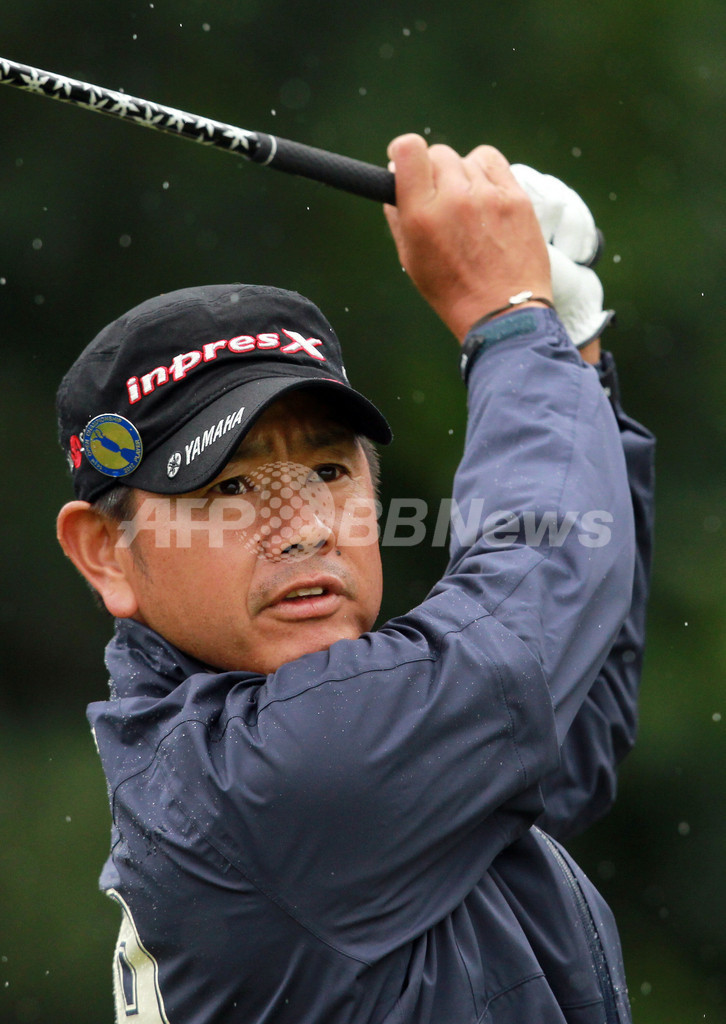 練習ラウンドに臨む藤田寛之(Hiroyuki Fujita、2012年7月16日撮影)(c)AFP/PETER MUHLY