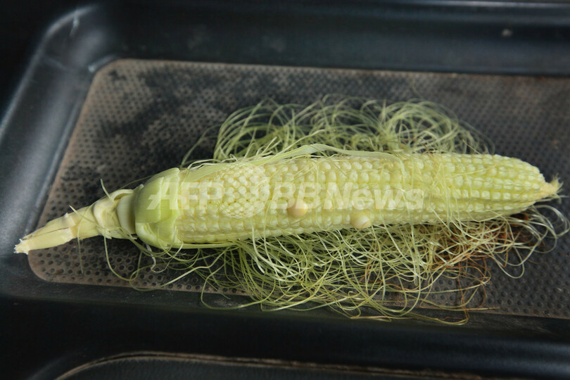 写真はイリノイ(Illinois)州アシュリー(Ashley)の農場で収穫された、やせ細ったトウモロコシの実(2012年7月16日撮影)。(c)AFP/Getty Images/Scott Olson