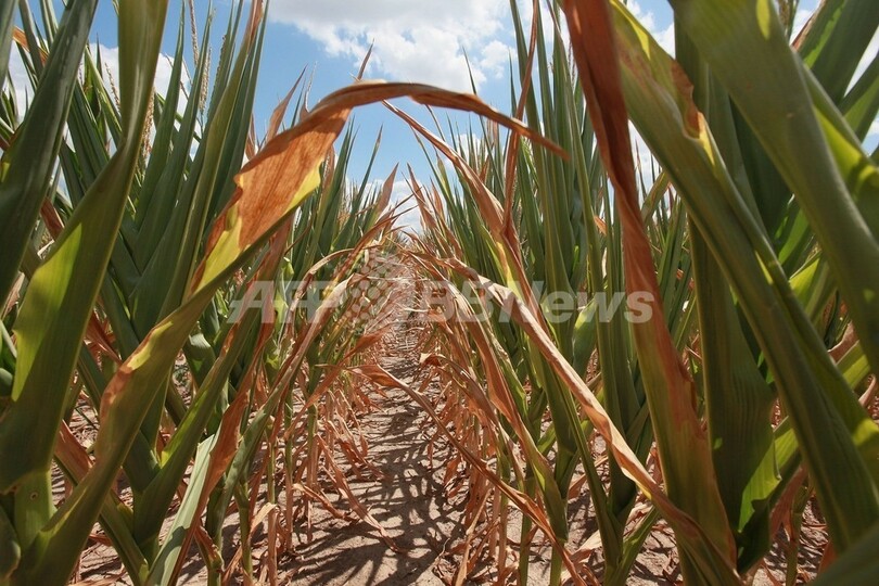 写真はイリノイ(Illinois)州アシュリー(Ashley)で、干ばつ被害を受けたトウモロコシ畑(2012年7月16日撮影)。(c)AFP/Getty Images/Scott Olson