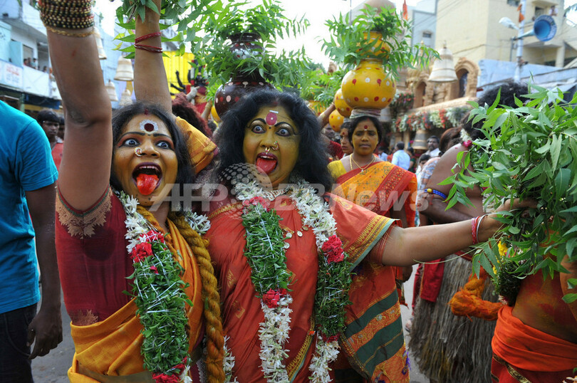ニュース ライフ こぼれ話 ヒンズー教の女神マハカーリーの祭り、インド 2012年7月17日 20:35 発信地:ハイデラバード/インド [ アジア・オセアニア インド ] このニュースをシェア ‹ › ❮ 8/16 ❯ インド・ハイデラバード(Hyderabad)の寺院では、ヒンズー教の女神マハカーリー(MahaKali)を称える祭り「ボナル(Bonalu)」が開催されている。祭りの期間中、主に女性たちが踊りや食物を女神に捧げる。写真は祭り11日目の儀式でマハカーリーの姿に扮したアーティストたち(2012年7月16日撮影)。(c)AFP/Noah SEELAM 画像作成中 ! 【7月17日 AFP】インド・ハイデラバード(Hyderabad)の寺院では、ヒンズー教の女神マハカーリー(MahaKali)を称える祭り「ボナル(Bonalu)」が開催されている。祭りの期間中、主に女性たちが踊りや食物を女神に捧げる。(c)AFP ライフ 一覧へ> メディア・報道関係・法人の方向け 写真・動画 購入のお問合せ>