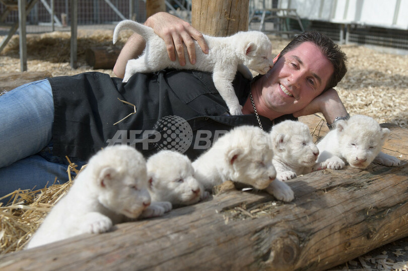 ニュース ライフ こぼれ話 真っ白でふかふか、ホワイトライオンの赤ちゃんが6匹! 2012年7月18日 13:55 発信地:ケンプテン/ドイツ [ ヨーロッパ ドイツ ] このニュースをシェア ‹ › ❮ 8/8 ❯ ドイツ南部ケンプテン(Kempten)で11日、サーカス団「サーカス・クローネ(Circus Krone)」のホワイトライオンの赤ちゃん6匹が生まれた。写真は、生後1週間の赤ちゃんライオンに囲まれてご機嫌のライオン調教師マルティンさん(2012年7月17日撮影)。(c)AFP/TOBIAS KLEINSCHMIDT 画像作成中 ! 【7月18日 AFP】ドイツ南部ケンプテン(Kempten)で11日、サーカス団「サーカス・クローネ(Circus Krone)」のホワイトライオンの赤ちゃん6匹が生まれた。(c)AFP ライフ 一覧へ> メディア・報道関係・法人の方向け 写真・動画 購入のお問合せ>