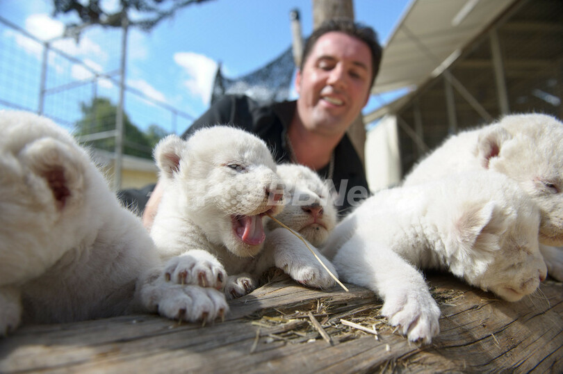 ニュース ライフ こぼれ話 真っ白でふかふか、ホワイトライオンの赤ちゃんが6匹! 2012年7月18日 13:55 発信地:ケンプテン/ドイツ [ ヨーロッパ ドイツ ] このニュースをシェア ‹ › ❮ 6/8 ❯ ドイツ南部ケンプテン(Kempten)で11日、サーカス団「サーカス・クローネ(Circus Krone)」のホワイトライオンの赤ちゃん6匹が生まれた。写真は、生後1週間の赤ちゃんライオンに囲まれてご機嫌のライオン調教師マルティンさん(2012年7月17日撮影)。(c)AFP/TOBIAS KLEINSCHMIDT 画像作成中 ! 【7月18日 AFP】ドイツ南部ケンプテン(Kempten)で11日、サーカス団「サーカス・クローネ(Circus Krone)」のホワイトライオンの赤ちゃん6匹が生まれた。(c)AFP ライフ 一覧へ> メディア・報道関係・法人の方向け 写真・動画 購入のお問合せ>