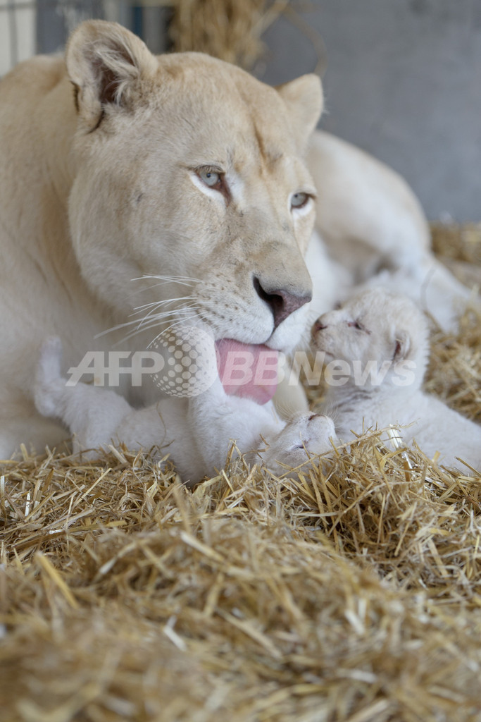 ニュース ライフ こぼれ話 真っ白でふかふか、ホワイトライオンの赤ちゃんが6匹! 2012年7月18日 13:55 発信地:ケンプテン/ドイツ [ ヨーロッパ ドイツ ] このニュースをシェア ‹ › ❮ 2/8 ❯ ドイツ南部ケンプテン(Kempten)で11日、サーカス団「サーカス・クローネ(Circus Krone)」のホワイトライオンの赤ちゃん6匹が生まれた。写真は、生後1週間の赤ちゃんライオンをなめる母ライオンのプリンセス(2012年7月17日撮影)。(c)AFP/TOBIAS KLEINSCHMIDT 画像作成中 ! 【7月18日 AFP】ドイツ南部ケンプテン(Kempten)で11日、サーカス団「サーカス・クローネ(Circus Krone)」のホワイトライオンの赤ちゃん6匹が生まれた。(c)AFP ライフ 一覧へ> メディア・報道関係・法人の方向け 写真・動画 購入のお問合せ>