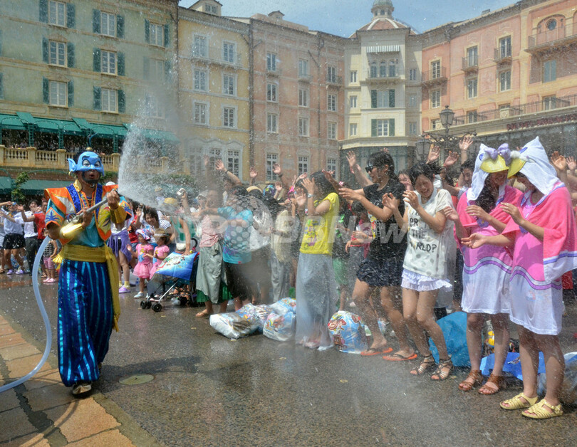 【7月18日 AFP】連日30度を超える真夏日が続くなか、千葉県浦安市の東京ディズニーシー(Tokyo Disney Sea)で、南の島をイメージした夏向けウォータープログラム、サマーオアシス・スプラッシュ(Summer Oasis Splash)が始まった。(c)AFP