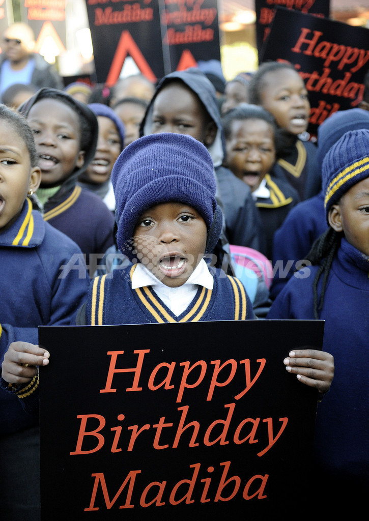 南アフリカ全土の学校では計1200万人の生徒が、この日の初めにマンデラ氏の誕生日を祝う歌を歌った。