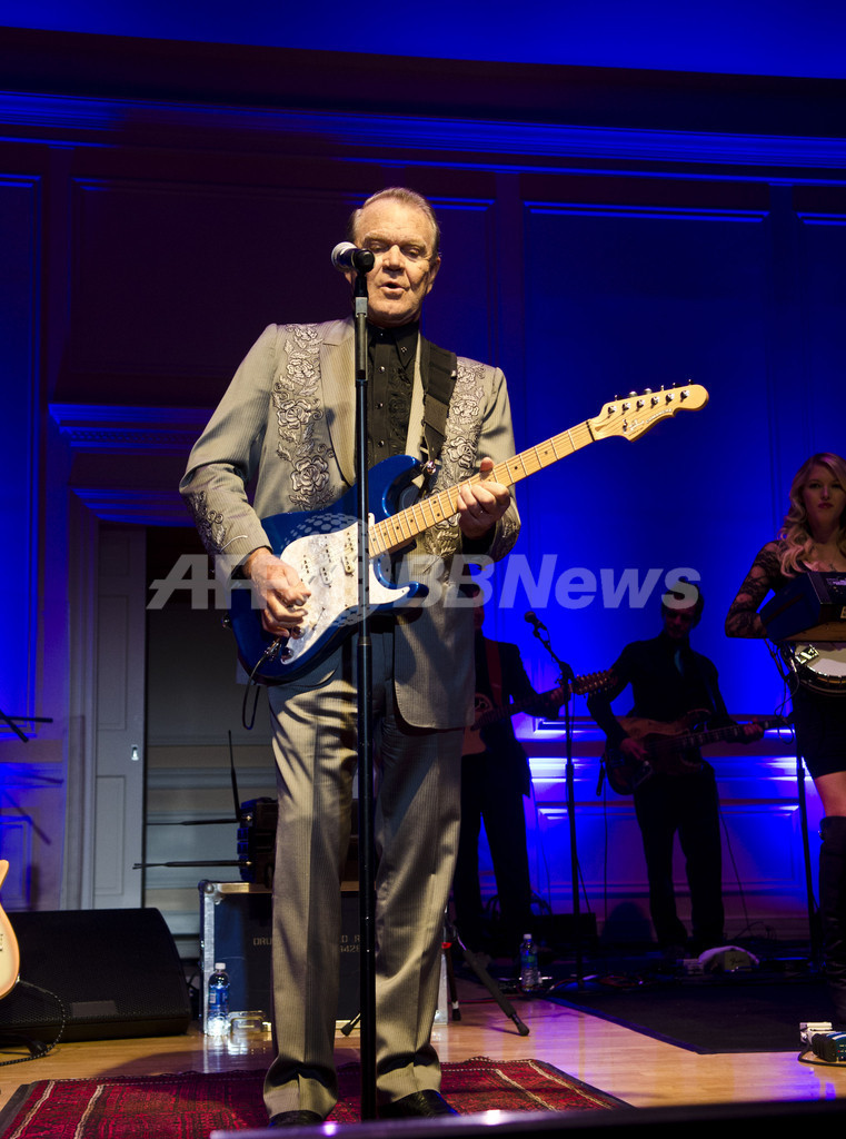 キャンベルは現在76歳。「ラインストーン・カウボーイ(Rhinestone Cowboy)」や「サザン・ナイツ(Southern Nights)」などのヒット曲で知られ、70枚以上のアルバムを出している。(c)AFP