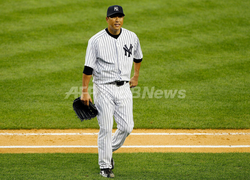 【7月19日 AFP】米大リーグ(MLB)、ニューヨーク・ヤンキース(New York Yankees)の黒田博樹(Hiroki Kuroda)は18日、トロント・ブルージェイズ(Toronto Blue Jays)戦に先発登板し、7回を投げ4安打無失点、5奪三振で今季9勝目を挙げた。(c)AFP