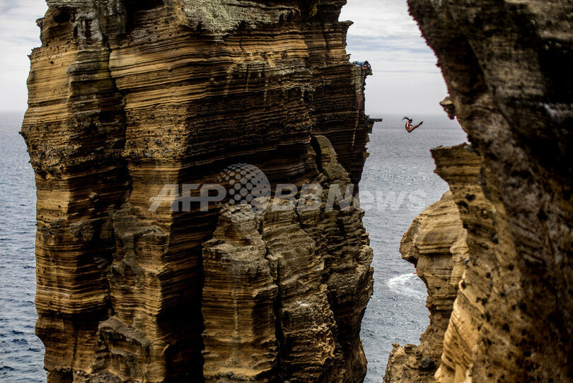 【7月22日 AFP】世界各地の断崖からのダイビングを競う恒例の「レッドブル・クリフ・ダイビング・ワールド・シリーズ(Red Bull Cliff Diving World Series)」が、ポルトガルのアゾレス(Azores)諸島サンミゲル(Sao Miguel)島のビラ・フランカ・ド・カンポ(Vila Franca Do Campo)で行われた。(c)AFP