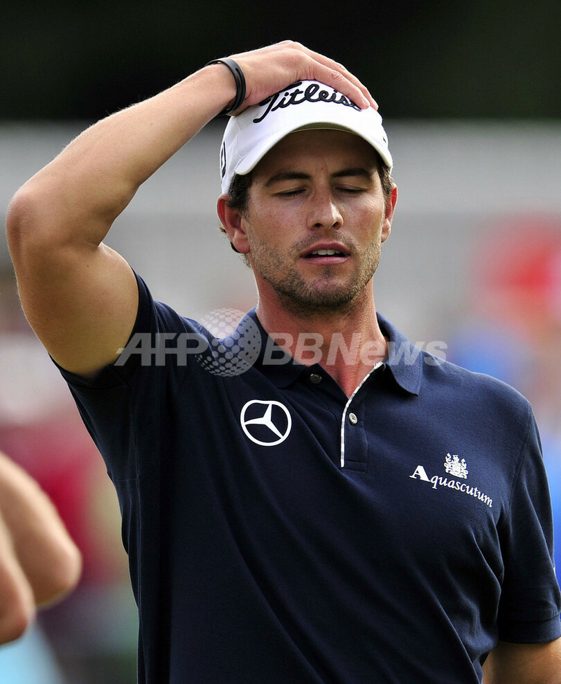 18番ホールでパットを外し落胆するオーストラリアのアダム・スコット(Adam Scott、2012年7月22日撮影)。(c)AFP/GLYN KIRK