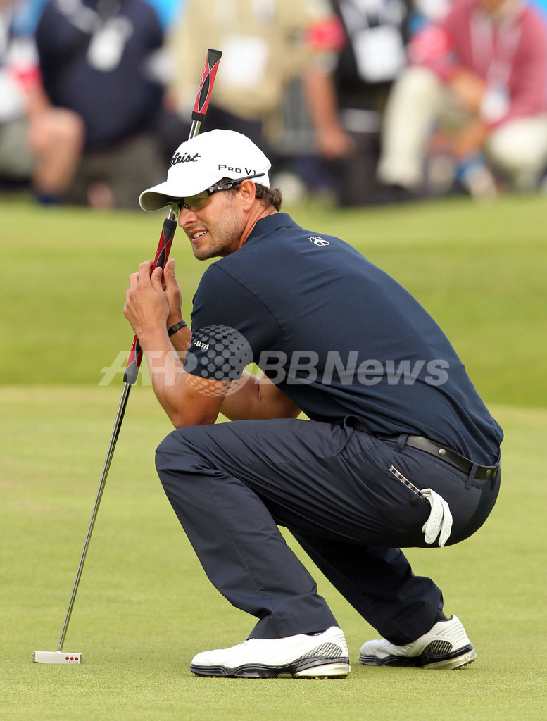 18番ホールでパットを外し落胆するオーストラリアのアダム・スコット(Adam Scott、2012年7月22日撮影)。(c)AFP/GLYN KIRK