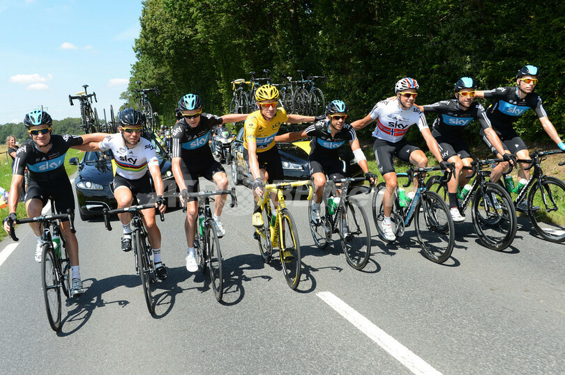 第20ステージで併走するスカイの選手(2012年7月22日撮影)。(c)AFP/GRAHAM WATSON