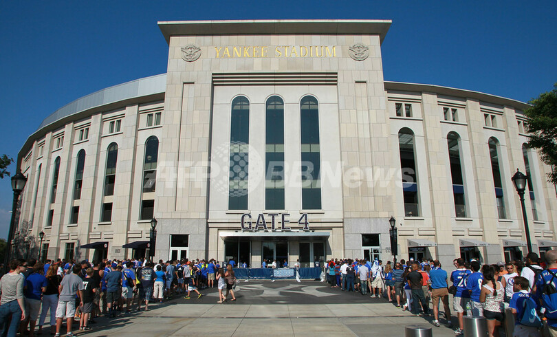 ヤンキースタジアムの開門を待つファンの列(2012年7月22日撮影)。2012年7月22日撮影)。(c)AFP/Getty Images/Andy Marlin