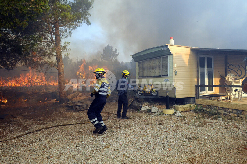 【7月24日 AFP】スペイン北東部カタルーニャ(Catalunya)自治州で22日に発生した山火事は、25メートルの強風にあおられ23日までに約1万3000ヘクタールを焼き、現在も鎮火の見通しは立っていない。この火事の煙は約150キロ離れたバルセロナ(Barcelona)にも届いた。自治州政府によるとこれまでに4人が死亡し、23人が負傷した。