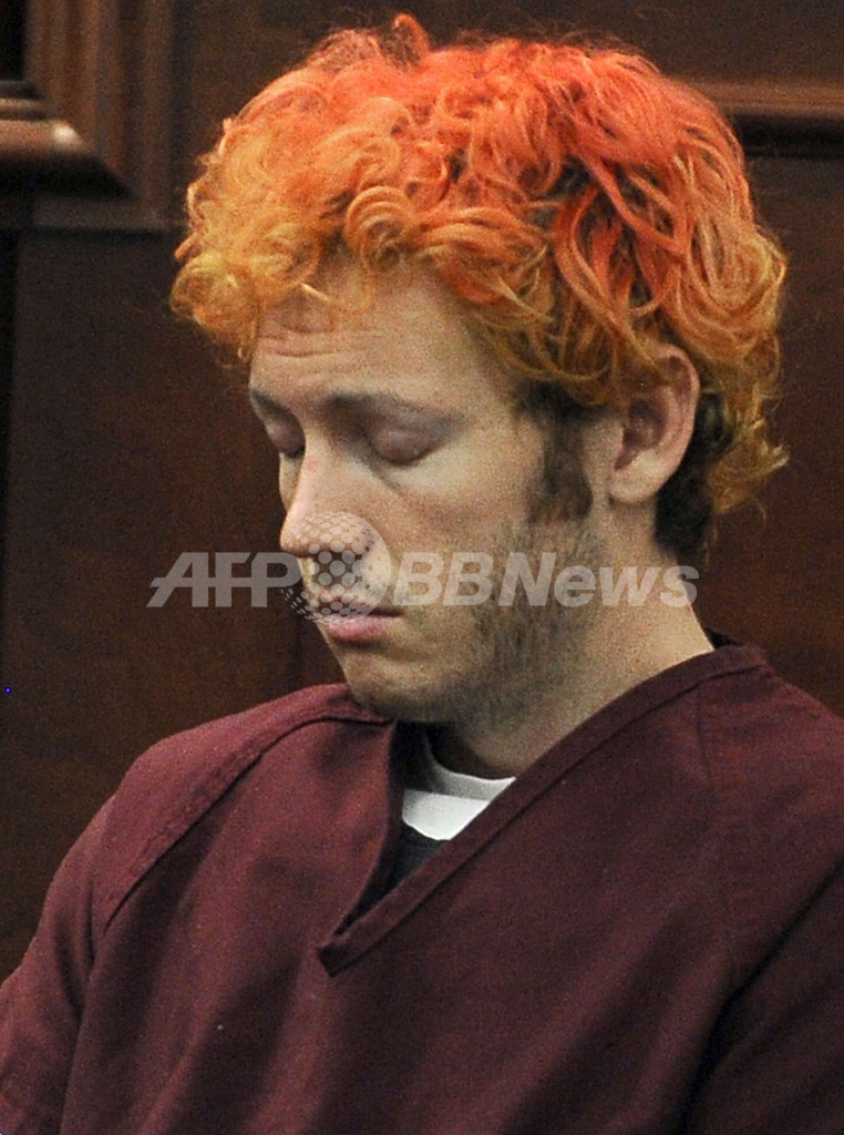 【7月24日 AFP】20日に米コロラド(Colorado)州オーロラ(Aurora)で映画『バットマン(Batman)』シリーズ最新作の上映中に起きた銃乱射事件のジェームズ・ホームズ(James Holmes)容疑者(24)の予備審問が23日、同州センテニアル(Centennial)のアラパホー(Arapahoe)郡地裁で開かれ、同容疑者が事件後初めて出廷した。