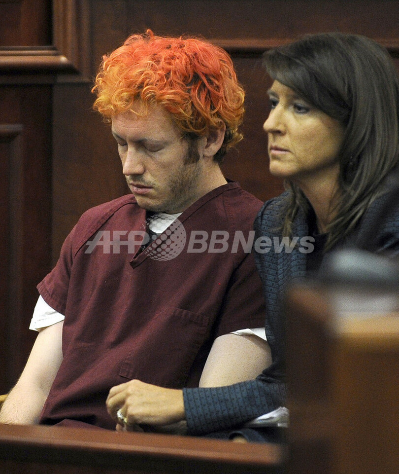 【7月24日 AFP】20日に米コロラド(Colorado)州オーロラ(Aurora)で映画『バットマン(Batman)』シリーズ最新作の上映中に起きた銃乱射事件のジェームズ・ホームズ(James Holmes)容疑者(24)の予備審問が23日、同州センテニアル(Centennial)のアラパホー(Arapahoe)郡地裁で開かれ、同容疑者が事件後初めて出廷した。