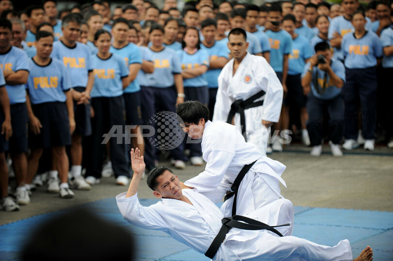 ニュース ライフ 空手やテコンドーを教官が実演、フィリピン警察 2012年7月24日 20:01 発信地:マニラ/フィリピン [ アジア・オセアニア フィリピン ] このニュースをシェア ‹ › ❮ 4/7 ❯ フィリピンの首都マニラ(Manila)にある国家警察庁(Philippine National Police、PNP)の施設で24日、警察官向けの格闘技プログラムが開催された。写真は空手の教官による実演を見つめる警察官ら(2012年7月24日撮影)。(c)AFP 画像作成中 ! 【7月24日 AFP】フィリピンの首都マニラ(Manila)にある国家警察庁(Philippine National Police、PNP)の施設で24日、警察官向けの格闘技プログラムが開催された。(c)AFP ライフ 一覧へ> メディア・報道関係・法人の方向け 写真・動画 購入のお問合せ>