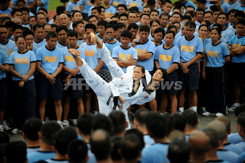 ニュース ライフ 空手やテコンドーを教官が実演、フィリピン警察 2012年7月24日 20:01 発信地:マニラ/フィリピン [ アジア・オセアニア フィリピン ] このニュースをシェア ‹ › ❮ 3/7 ❯ フィリピンの首都マニラ(Manila)にある国家警察庁(Philippine National Police、PNP)の施設で24日、警察官向けの格闘技プログラムが開催された。写真はテコンドーの教官による実演を見つめる警察官ら(2012年7月24日撮影)。(c)AFP 画像作成中 ! 【7月24日 AFP】フィリピンの首都マニラ(Manila)にある国家警察庁(Philippine National Police、PNP)の施設で24日、警察官向けの格闘技プログラムが開催された。(c)AFP ライフ 一覧へ> メディア・報道関係・法人の方向け 写真・動画 購入のお問合せ>
