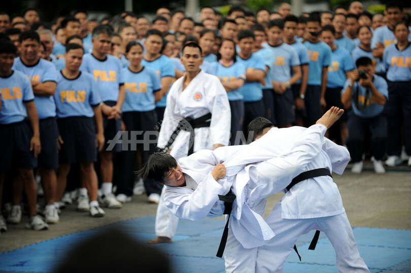 ニュース ライフ 空手やテコンドーを教官が実演、フィリピン警察 2012年7月24日 20:01 発信地:マニラ/フィリピン [ アジア・オセアニア フィリピン ] このニュースをシェア ‹ › ❮ 2/7 ❯ フィリピンの首都マニラ(Manila)にある国家警察庁(Philippine National Police、PNP)の施設で24日、警察官向けの格闘技プログラムが開催された。写真は空手の教官による実演を見つめる警察官ら(2012年7月24日撮影)。(c)AFP 画像作成中 ! 【7月24日 AFP】フィリピンの首都マニラ(Manila)にある国家警察庁(Philippine National Police、PNP)の施設で24日、警察官向けの格闘技プログラムが開催された。(c)AFP ライフ 一覧へ> メディア・報道関係・法人の方向け 写真・動画 購入のお問合せ>